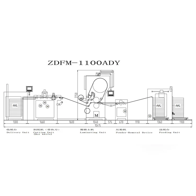 Làm sạch và cán màng: Đầu tiên giấy đi qua máy tẩy bột tĩnh điện để làm sạch bề mặt, sau đó được ép chính xác bằng một màng phủ keo (hoặc màng phủ trước) dưới các con lăn được gia nhiệt.
