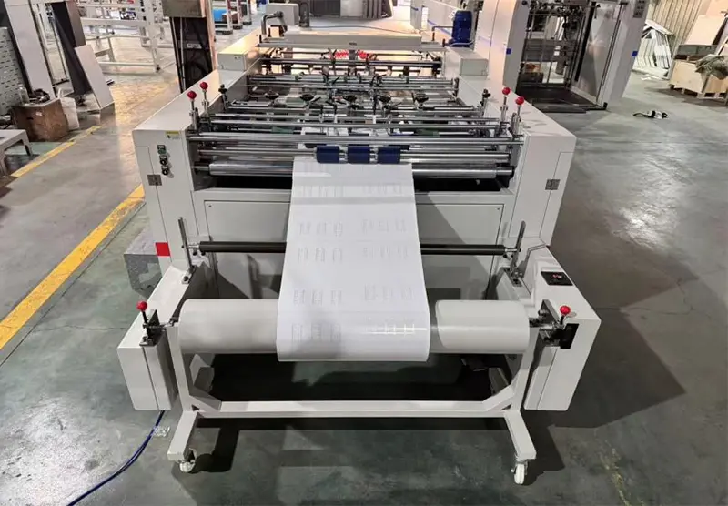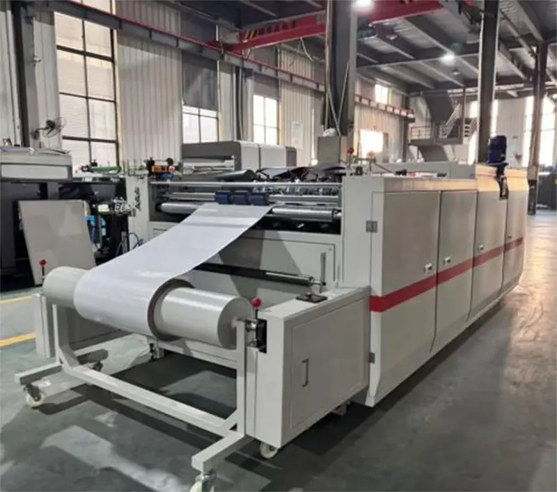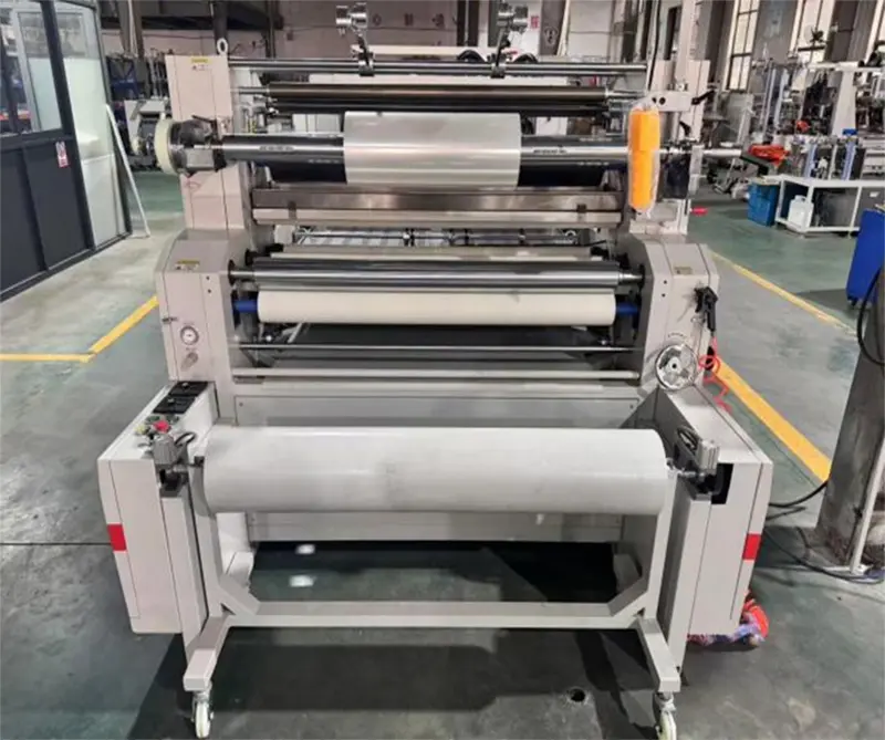 Máy cắt giấy riêng biệt được trang bị bộ điều khiển độ căng, phẳng và không quăn sau khi cán giấy mỏng.