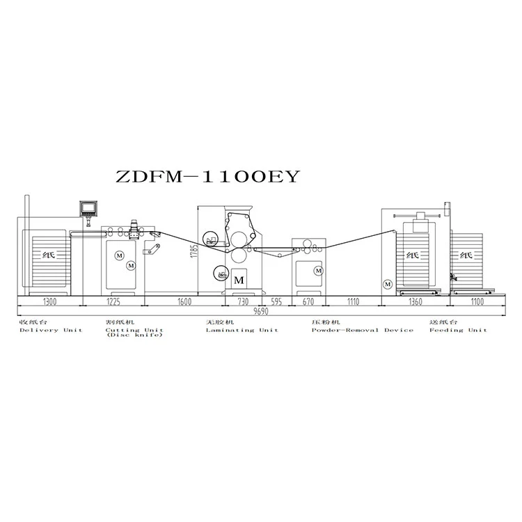 Máy cán màng phủ trước màng nhiệt ZDFM-EY loại bỏ bột từ Nhà máy Hongqiang thực hiện việc tích hợp quy trình "xử lý sạch" và "tái kết hợp hiệu quả". Trong khi vẫn duy trì những ưu điểm về cấu trúc đơn giản, mức tiêu thụ năng lượng cực thấp (tổng công suất 32KW) và sản xuất lớp phủ sơ bộ nhanh chóng, nó vượt qua trở ngại duy nhất của quy trình phủ sơ bộ trong các ứng dụng cao cấp thông qua việc loại bỏ bột trước.